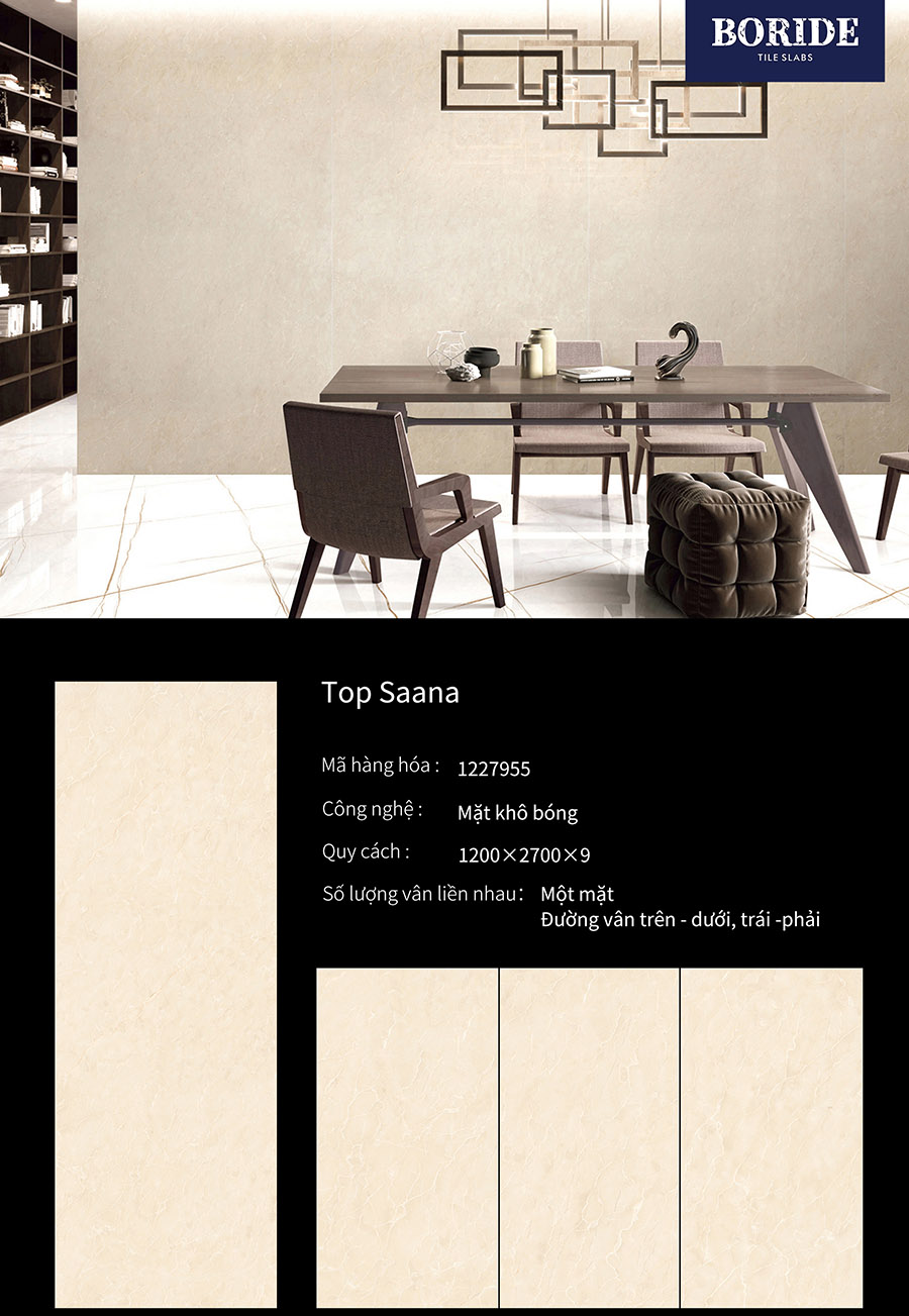 boride 1227955 kích thước 1200x2700mm Công nghệ Mặt khô Bóng. Thương hiệu đá phiến của Ý, sản phẩm có 1 face đường vân ngẫu nhiên, độ dầy 9mm..
