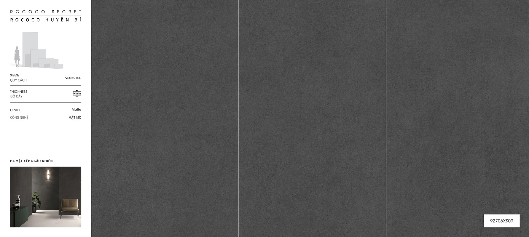 Boride 92706XS09 kích thước 900x2700mm bề mặt MATT. Thương hiệu đá phiến của Ý, sản phẩm có 3 face đường vân ngẫu nhiên liền vân độ dầy 6mm.