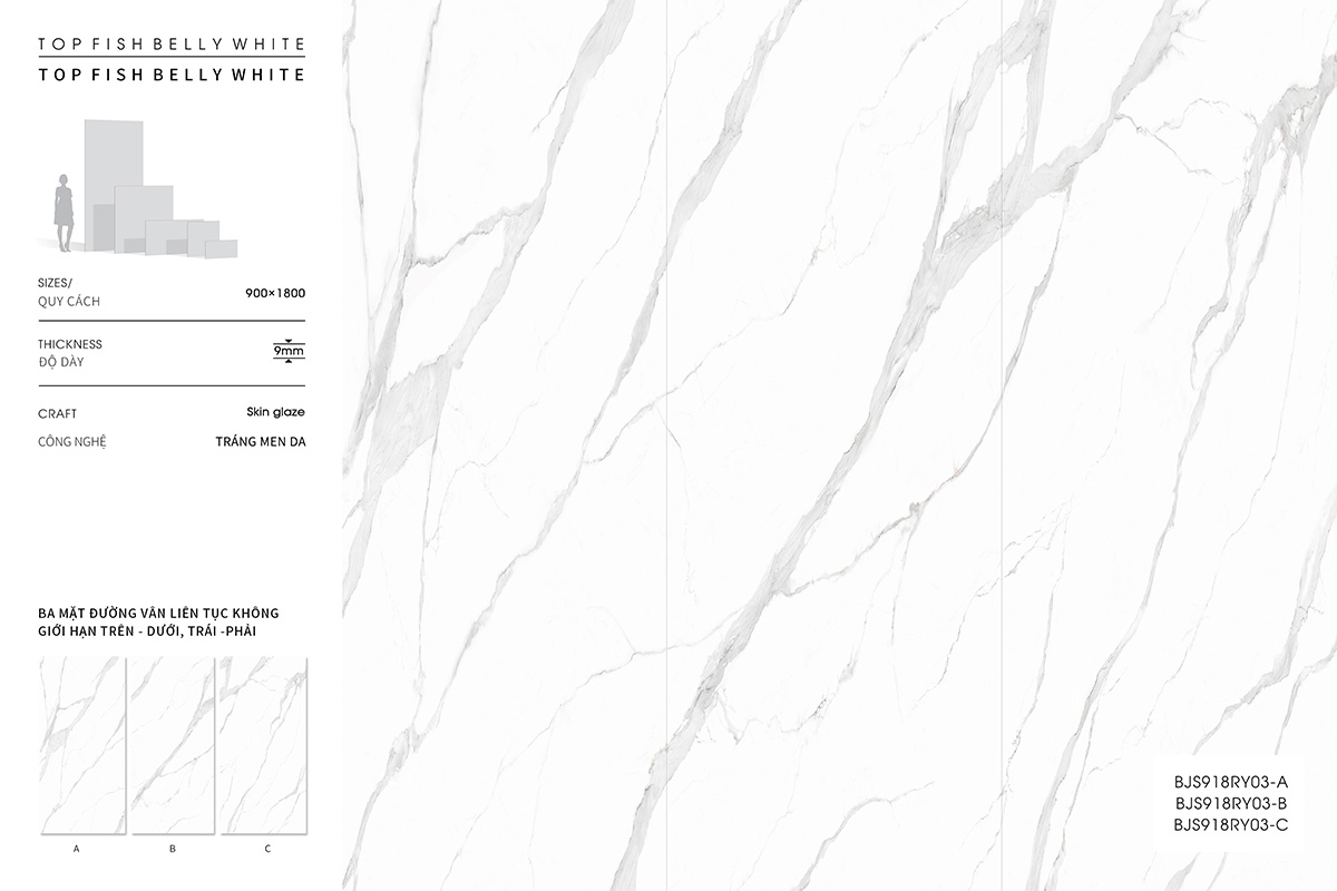 Boride BJS918RY03 kích thước 900x1800mm bề mặt bóng. Thương hiệu đá phiến của Ý, sản phẩm có 3 face đường vân liên tục. trên , dưới, trái, phải. độ dầy 9mm