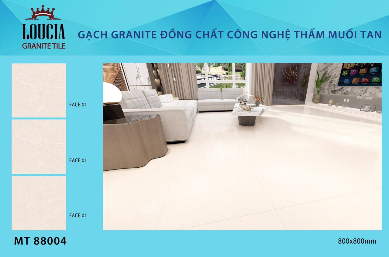 Gạch Granite đồng chất công nghệ thấm muối tan CMC MT88004 Kích thước 80x80cm, Bề mặt Siêu Bóng, quy cách đóng thùng 1 Hộp = 3 Viên = 1,92m²