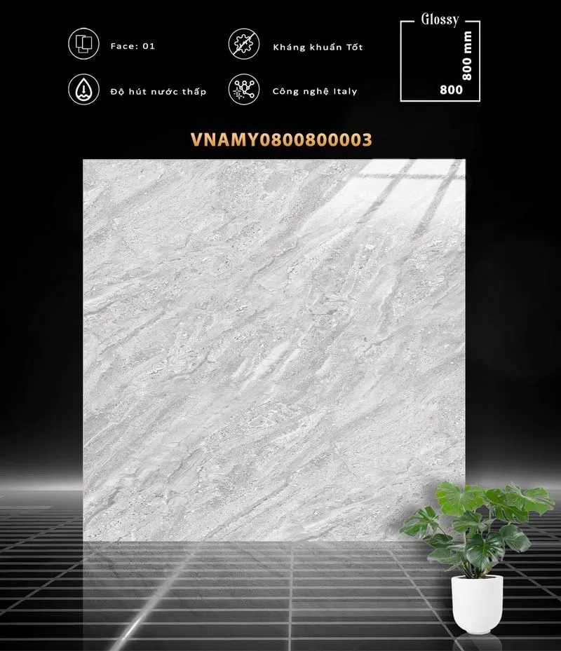Gạch LUSTILE VNAMY0800800003 hàng VN nhà máy Ý Mỹ size 800x800mm bề mặt Glossy, chống trầy xước, dầy 9,4mm, kháng khuẩn. 1 thùng = 3v= 1.92m²/thùng…