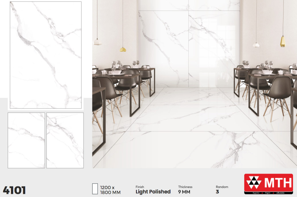 Gạch MTH Ấn Độ 4101 (1200x1800MM) nhập khẩu bằng đá granite Có Bề mặt Bóng kính vân đá tự nhiên. 1 thùng đóng 1 viên = 2,16m², dầy 9mm, random 3 face…