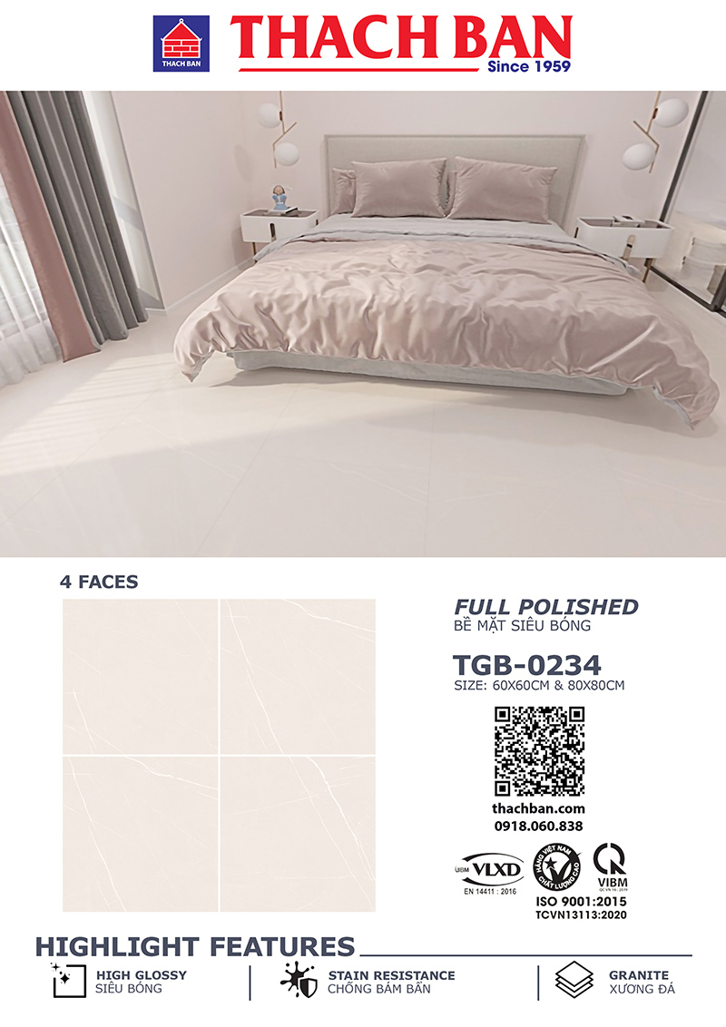 - Mã TGB60-0234 Size 60x60cm = 1 thùng 4 viên = 1,44m Cân Nặng 30kg/ thùng