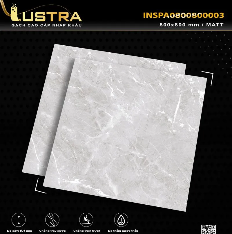 Gạch lustra INSPA0800800003 hàng nhập khẩu từ INDIA size 800x800mm bề mặt MATT, chống trầy xước, dầy 9,4mm, chống trơn trượt. 1 thùng = 3v= 1.92m²/thùng…