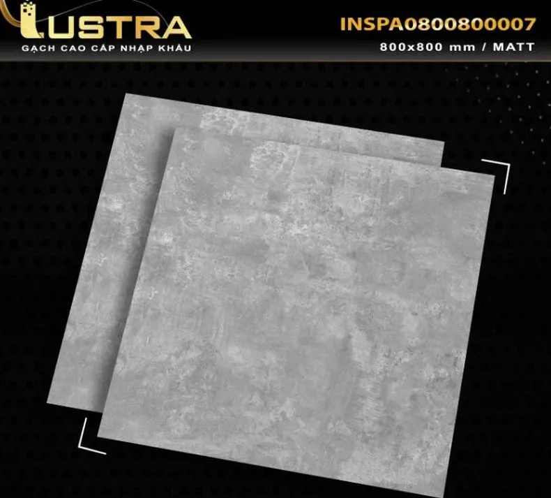 Gạch lustra inspa0800800007 hàng nhập khẩu từ INDIA size 800x800mm bề mặt MATT, chống trầy xước, dầy 9,4mm, chống trơn trượt. 1 thùng = 3v= 1.92m²/thùng…